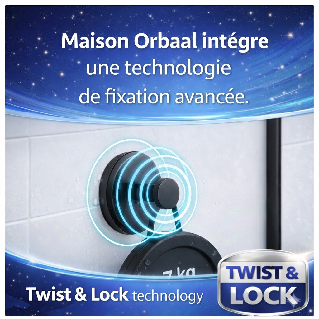 Les crochets à ventouse Maison Orbaal officiels, avec le système exclusif TWIST & LOCK pour une tenue maximale.