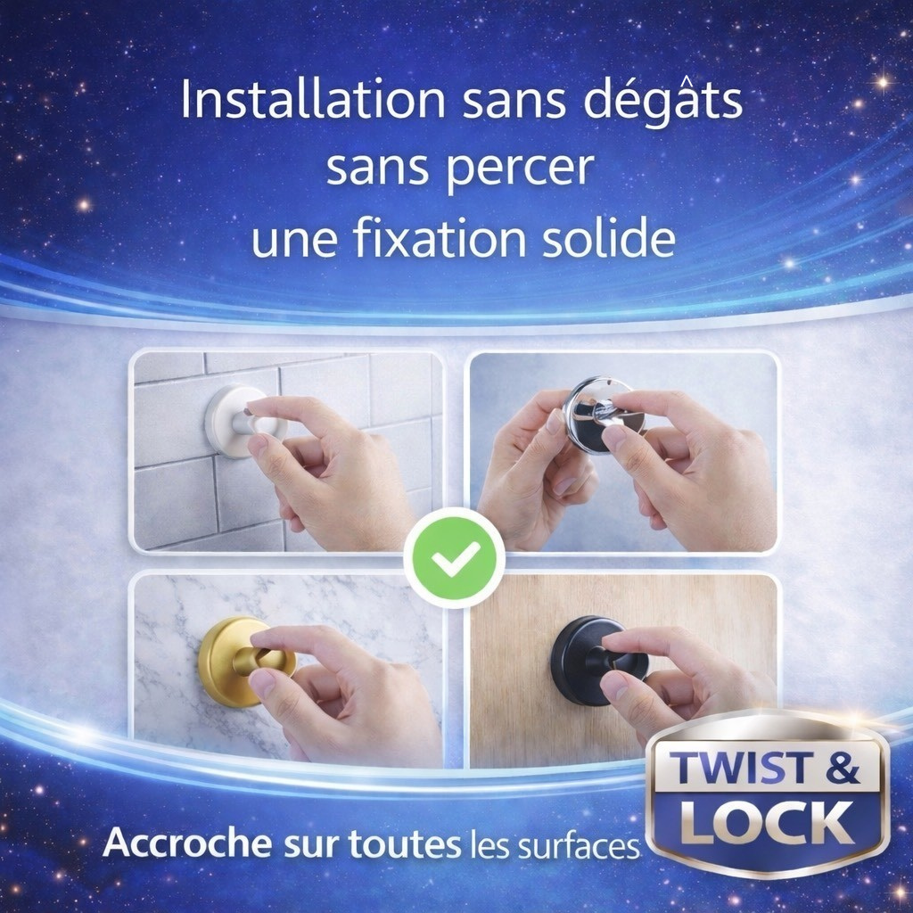 Les crochets à ventouse offrent une solution idéale grâce à leur technologie de fixation avancée TWIST & LOCK.